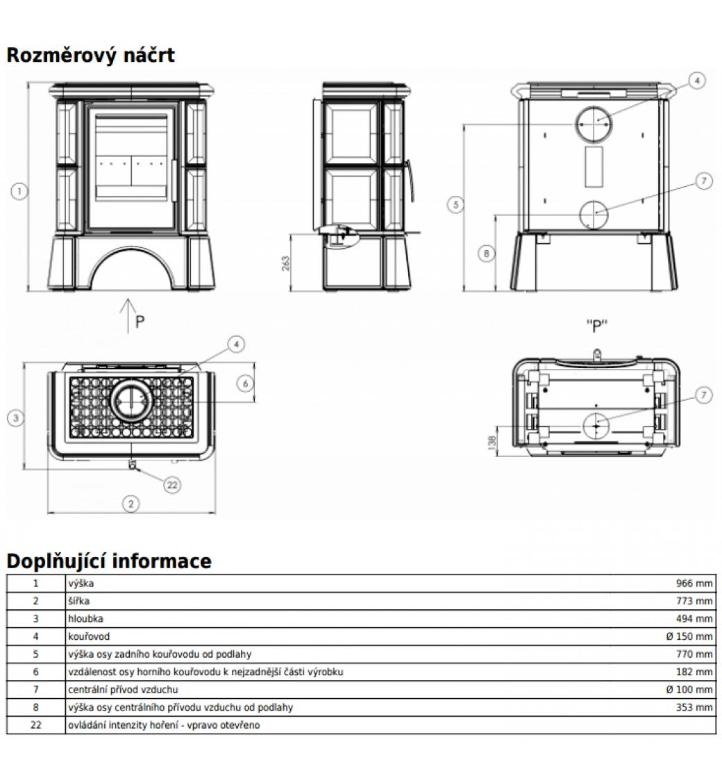 vývod kouřovodu horní nebo zadní - přestavitelný, lze jednoduše přeměnit
