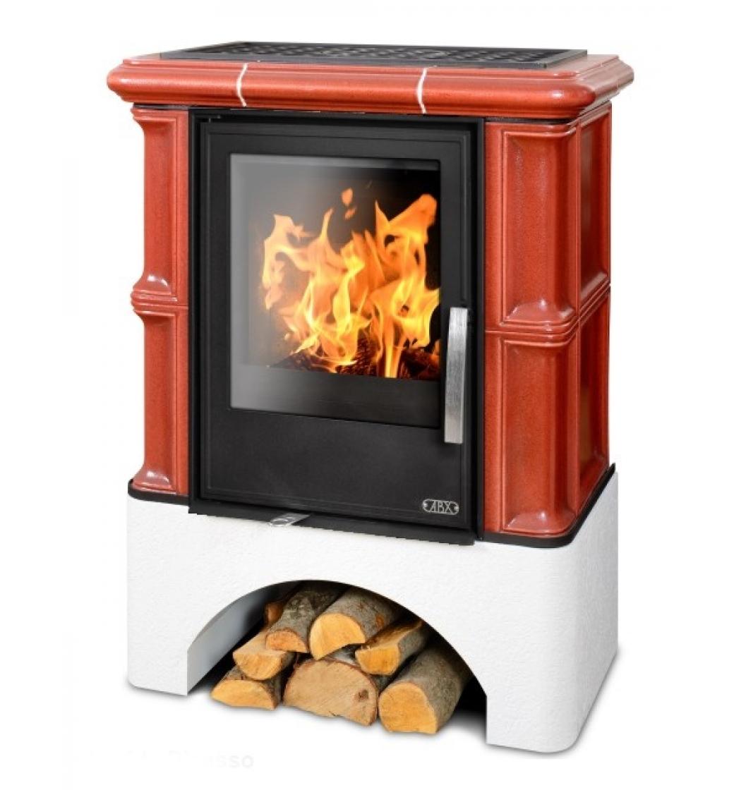Kachlová dvouplášťová teplovzdušná (konvekční) kamna s kombi topeništěm (plech/litina) a s centrálním přívodem vzduchu. Ocelové topeniště má šamotovou vyzdívkou, litinová dvířka a litinový rošt.