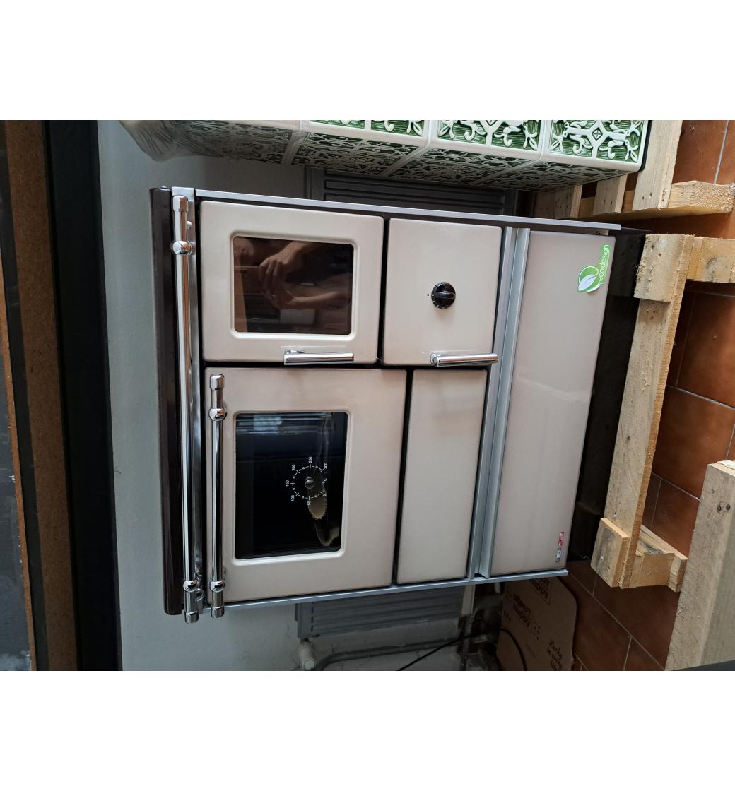 Rozměr trouby je 46 x 44 x 26 cm. Dvojité sklo trouby s vestavěným teploměrem. Dvě pozice dvířek trouby - zimní, letní provoz.
