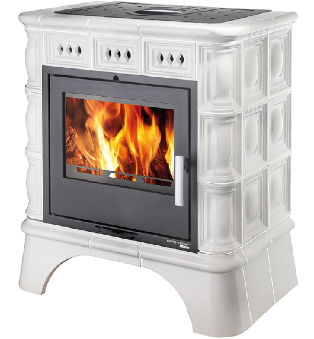 HAAS SOHN kachlová kamna MATERA s výměníkem kachlový sokl+kachlový obklad slonová kost