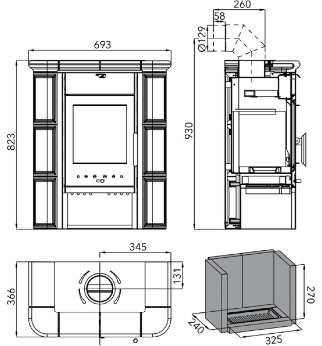 Mini znamená i to, že průměr vrchního kouřovodu je 130 cm, což ocení ti, kteří potřebují menší průměr pro napojení do komína. Kamna se dodávají komplet osazená kachlemi, stačí jen odborně napojit na komín a můžete topit.