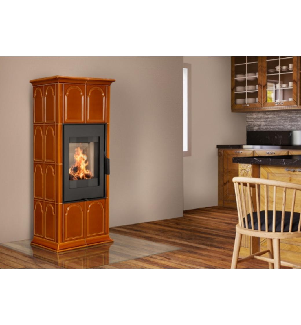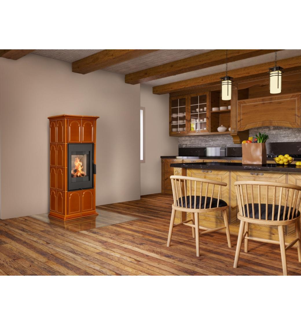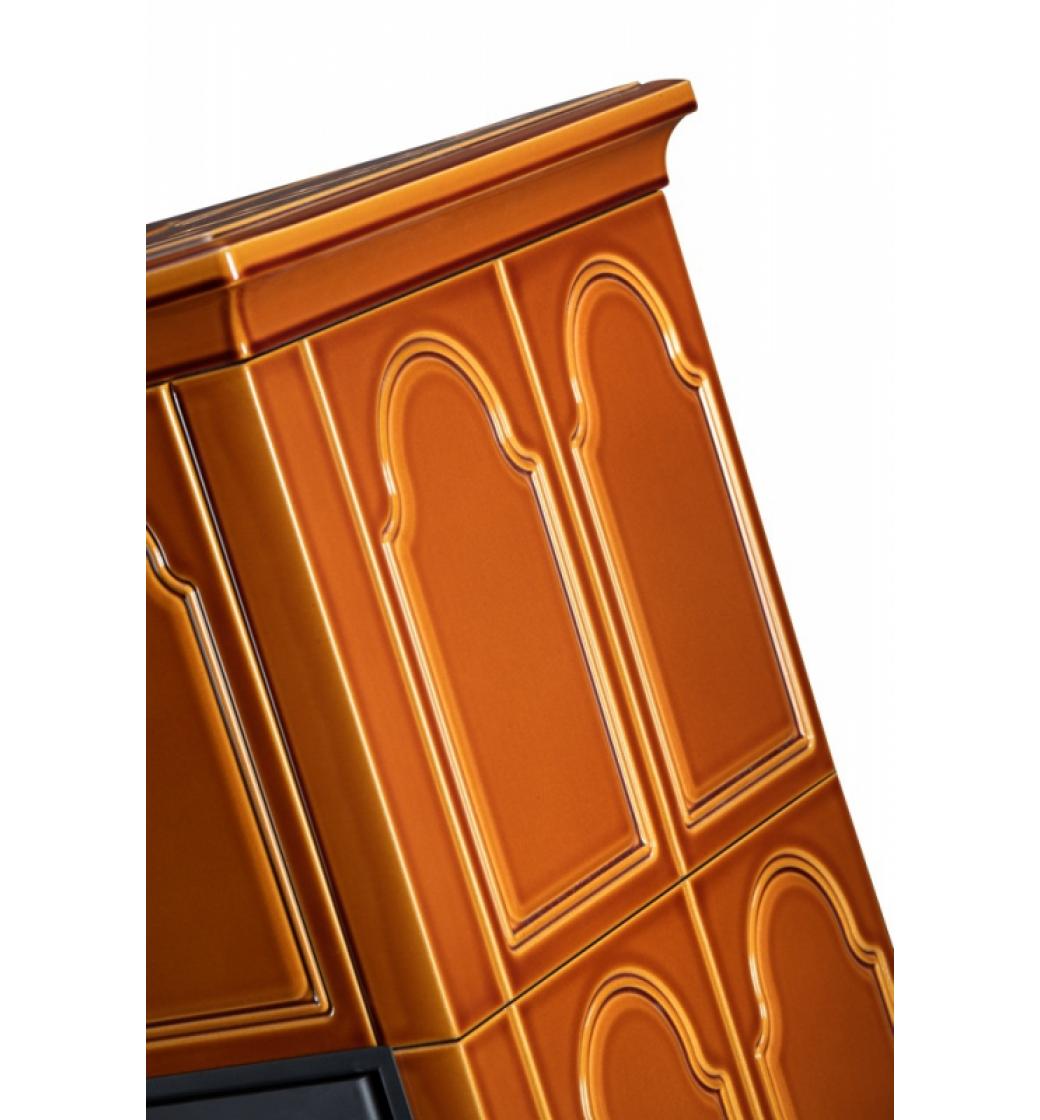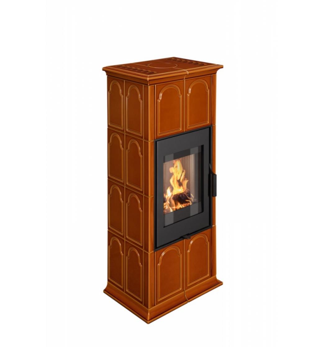 - Keramika kachlových kamen GREMO 2 na obrázku je v odstínu glazury 67300 Hnědá srnčí