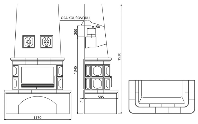 | vnější průměr kouřovodu: | ⌀150 mm |
