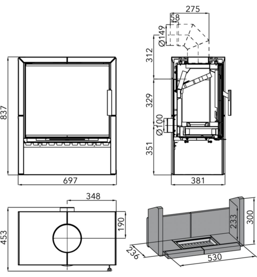 | Palivo: | dřevo, dřevěné brikety, uhelné brikety |