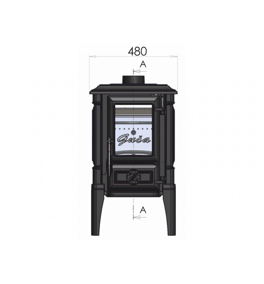 Robustní kvalitně zpracovaná litinová kamna s výkonem 10 kW vytopí až 200 m3. Kamna mají otočný litinový rošt, izolovanou kliku dvířek, ve kterých je samouzavírací pružina. Průměr kouřovodu je 120 mm, kamna mají horní i zadní vývod spalin. Jako palivo lze používat dřevo nebo dřevěné brikety.