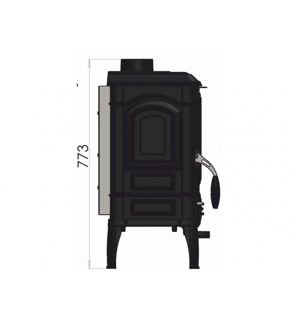 Robustní kvalitně zpracovaná litinová kamna s výkonem 10 kW vytopí až 200 m3. Kamna mají otočný litinový rošt, izolovanou kliku dvířek, ve kterých je samouzavírací pružina. Průměr kouřovodu je 120 mm, kamna mají horní i zadní vývod spalin. Jako palivo lze používat dřevo nebo dřevěné brikety.