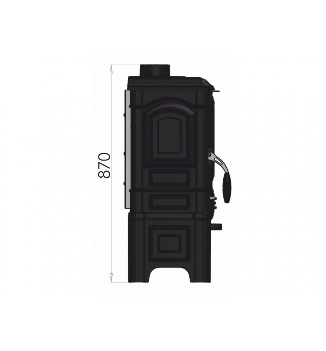 Robustní kvalitně zpracovaná litinová kamna s výkonem 10 kW vytopí až 200 m3. Kamna mají otočný litinový rošt, izolovanou kliku dvířek, ve kterých je samouzavírací pružina. Průměr kouřovodu je 120 mm, kamna mají horní i zadní vývod spalin. Jako palivo lze používat dřevo nebo dřevěné brikety.