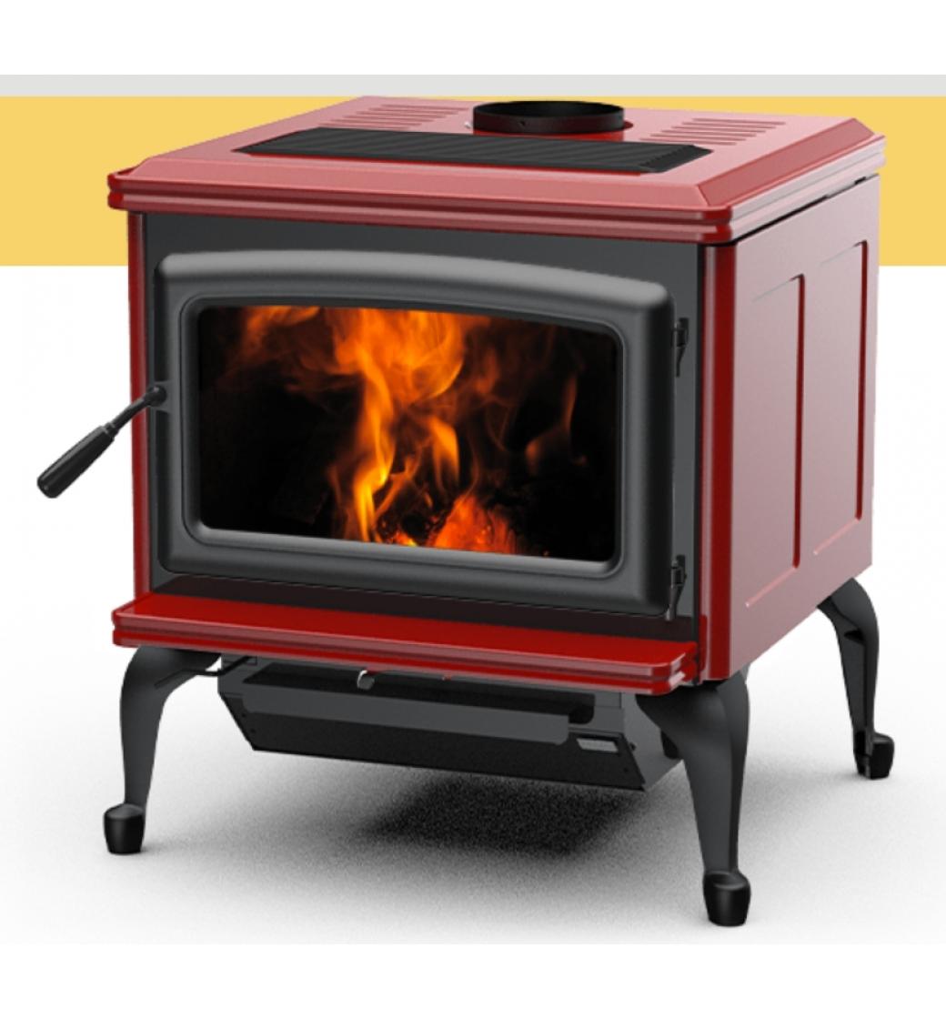 Kanadská kamna Pacific Energy SUMMIT CLASSIC červený smalt, černé dveře, černá mřížka, černé nožičky a popelníkový systém