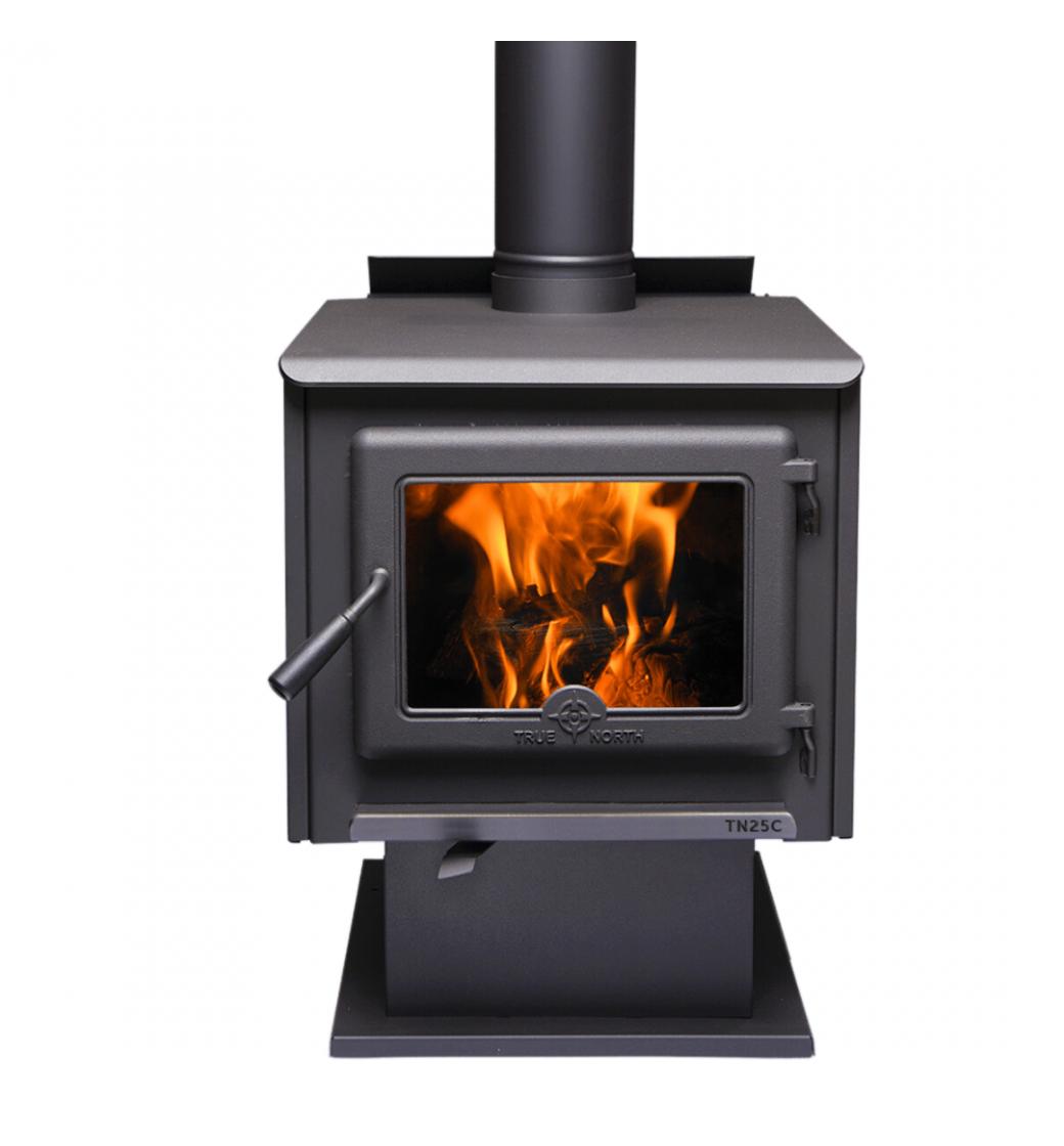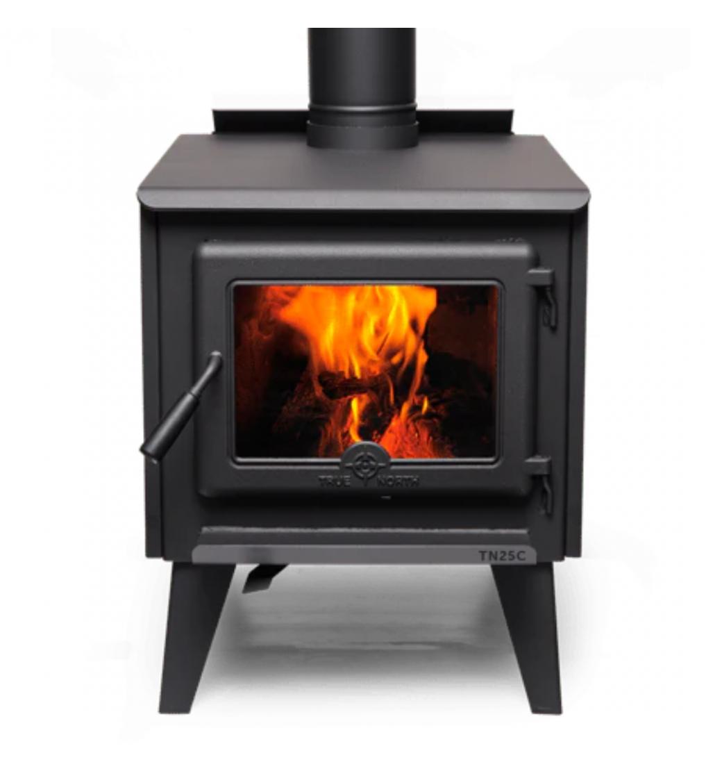 Kanadská kamna na dřevo True North 20 od firmy Pacific Energy, s dvojitým spalováním, velkou komorou a možností vybrat si mezi podstavcem nebo nožičkami, jsou ekonomickým řešením pro vytápění prostor s plochou 80 až 120 m2. Tento model je navržený s ohledem na cenu a jednoduché ovládání.