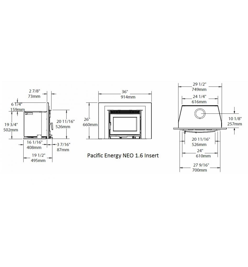 Kanadská krbová vložka Pacific Energy Neo 1.6 Insert