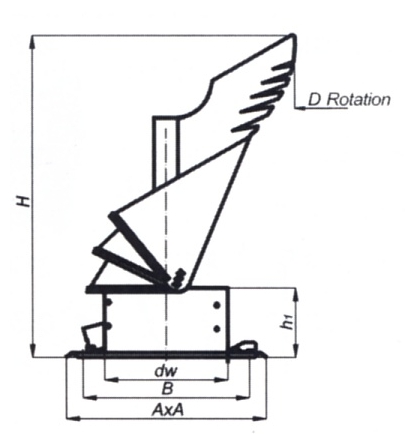 Komínová hlavice K30 se čtvercovou podstavou,průměr 250 mm (výklopná pro revizi komínu)