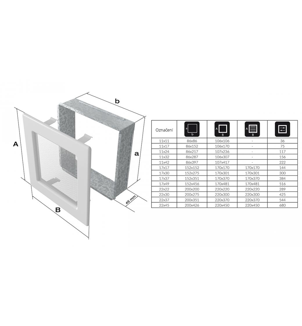 Je instalována srze vnitřní rámeček z pozinkovaného plechu. Toto řešení umožňuje rychlou montáž a demontáž např. pro čistění krbu. Může sloužit i jako revizní otvor.