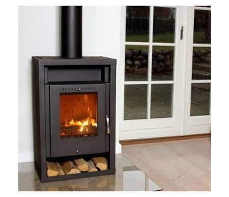 Pod spalovací komorou je zásobník na dřevo, takže máte palivo vždy po ruce.