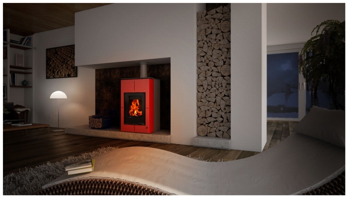 Krbová kamna HS Flamingo AQUAFLAM VARIO SAPORO 11/7kW červená, elektronická regulace