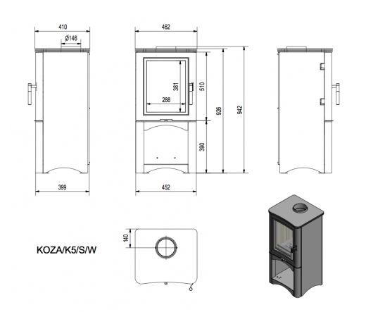 Krbová kamna KOZA K5 S W zásobník