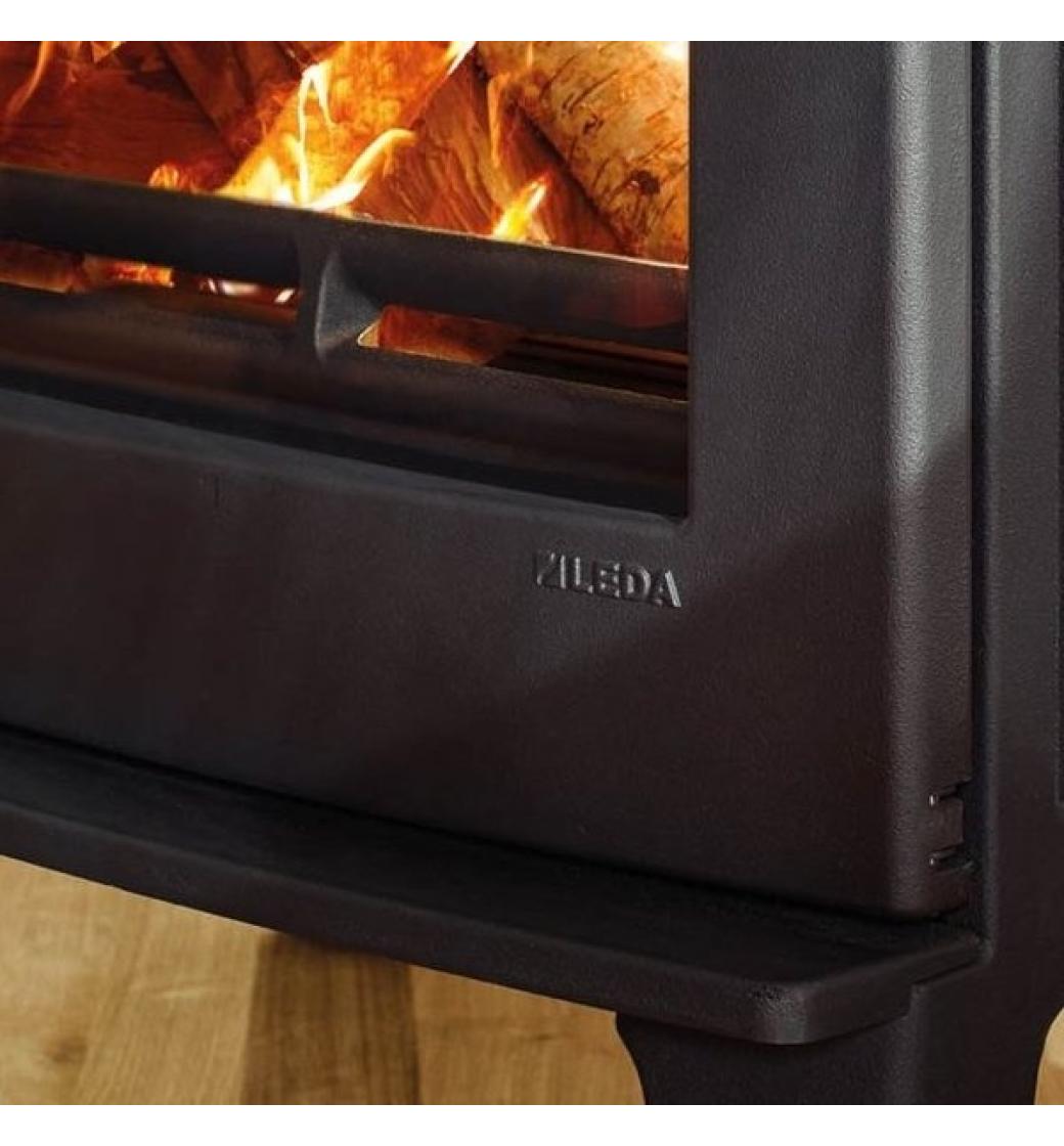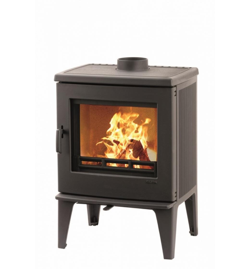 Kompaktní kvalitní litinová kamna od německého výrobce Leda vynikají masivní konstrukcí a velkým prosklením. Dokonalé spalování a pohodlné přikládání velkými dvířky zvyšuje komfort užívání. Povrchová úprava je černý matný lak. Nespornou výhodou je i možnost připojení přívodu vzduchu z exteriéru ovládání vzduchu jedním šoupákem a možnost horního či zadního odkouření.