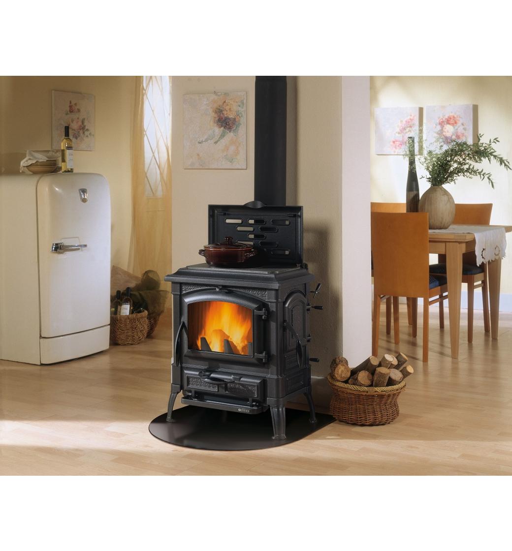 Kvalitní celolitinová kamna ve smaltu s plotnou.