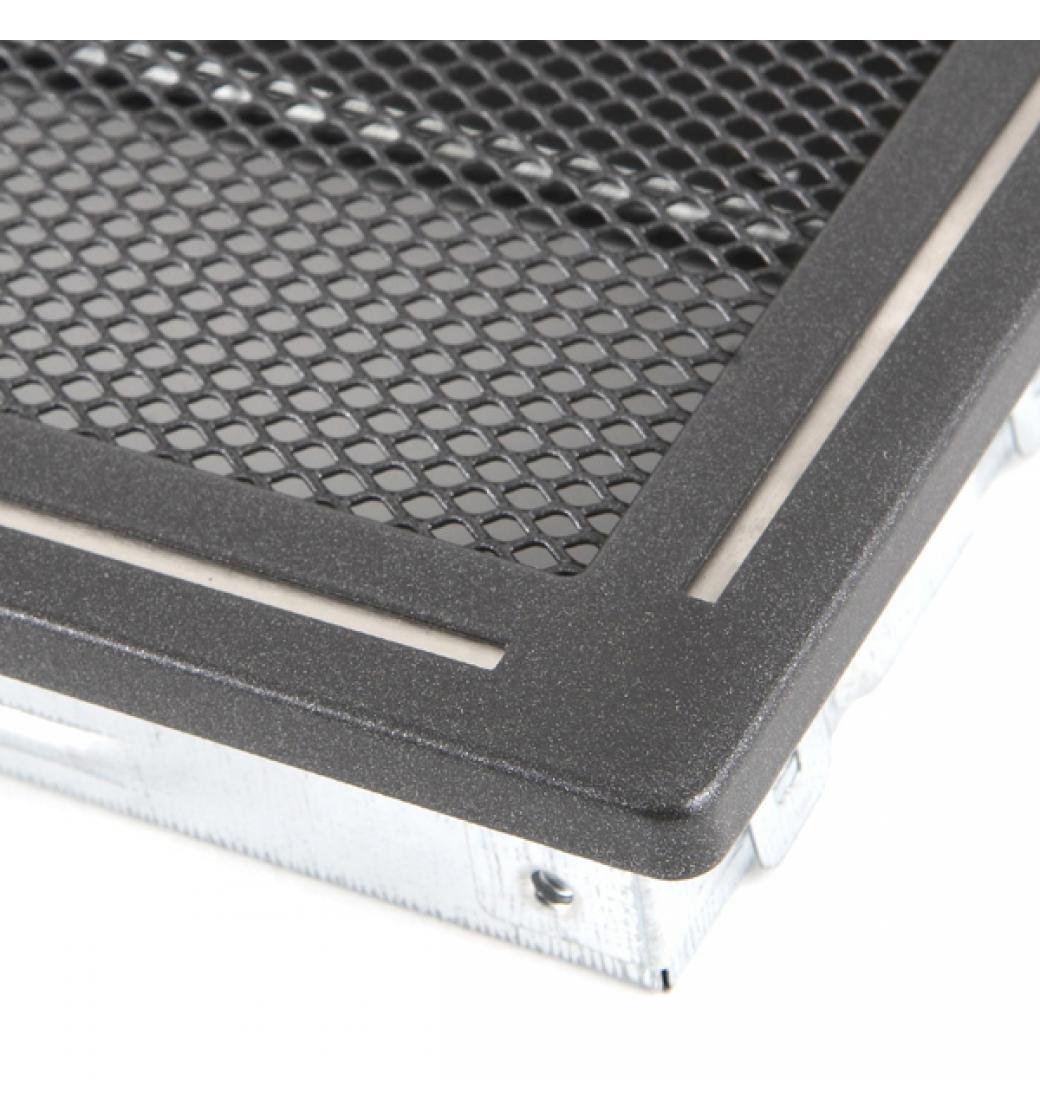 Ventilační mřížky různých rozměrů a v několika barvách. Ocelové s montážním rámečkem, lakované práškovou barvou vysoké kvality, která je odolná vůči vysokým teplotám. I po několikaletém provozu zachovává svůj původní lesk a odstín. Mřížky plní též funkci dekorační. Slouží ke clonění ventilačních otvorů. Jsou vyrobeny z ocelových částí a příslušně upraveny technologickým procesem. Tento typ mřížek je určen pro montáže do komínových sopouchů, stěn a podlah (nepoužívat na stropech).