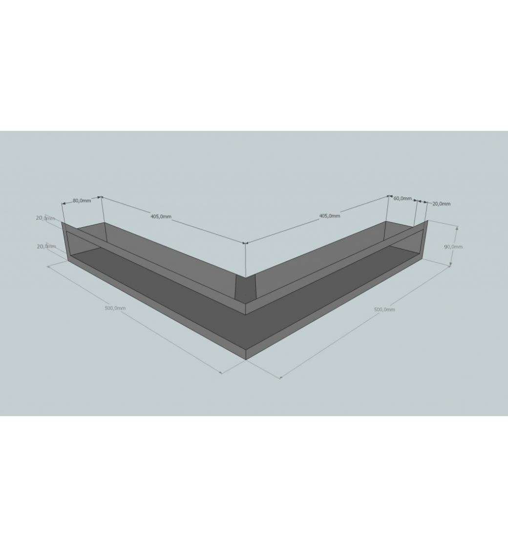 Krbová mřížka otevřená rohová 500x500x90 mm (50x50x9 cm) pro otvor 48,5x48,5x5,5 cm.