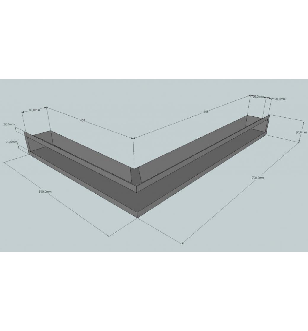 KRBOVÁ MŘÍŽKA OTEVŘENÁ ROHOVÁ 50X70X9 ANTRACIT HLOUBKA 8 CM