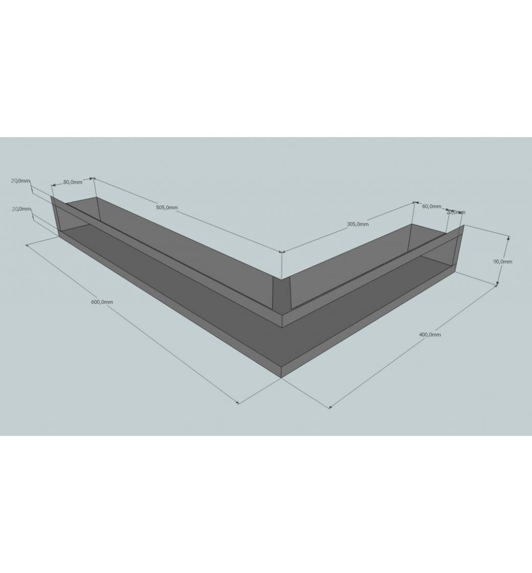 Krbová mřížka otevřená rohová 600x400x90 mm (60x40x9 cm) pro otvor 58,5x38,5x5,5 cm.
