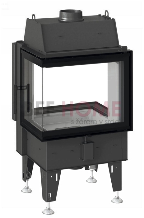 Průhledová krbová vložka, oboje dveře s otevíráním do strany - rohové (jednodílné ohýbané sklo)