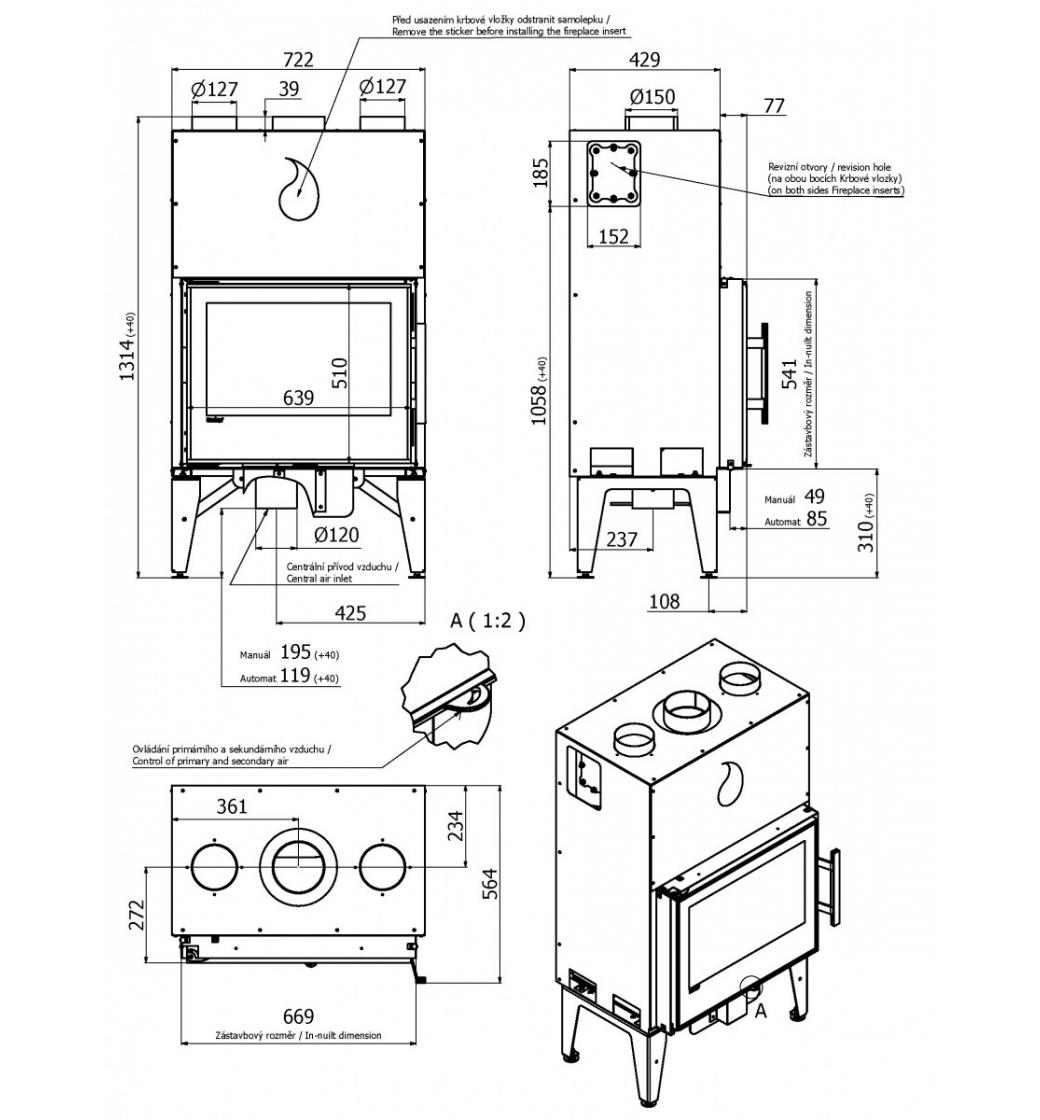 Manuální regulace - nerezové ovládání přímo na krbové vložce. Pomocí ovladače přívodu vzduchů si sami nastavíte optimální výkon. Ovladač je velice jednoduše ovladatelný a nepůsobí rušivě.