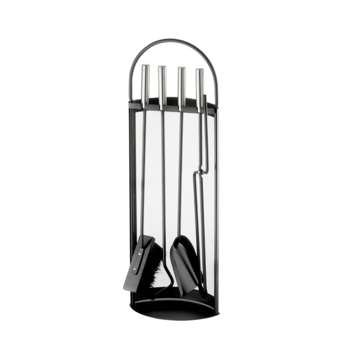 4-dílná souprava krbového nářadí v černé barvě s nerezovými madly