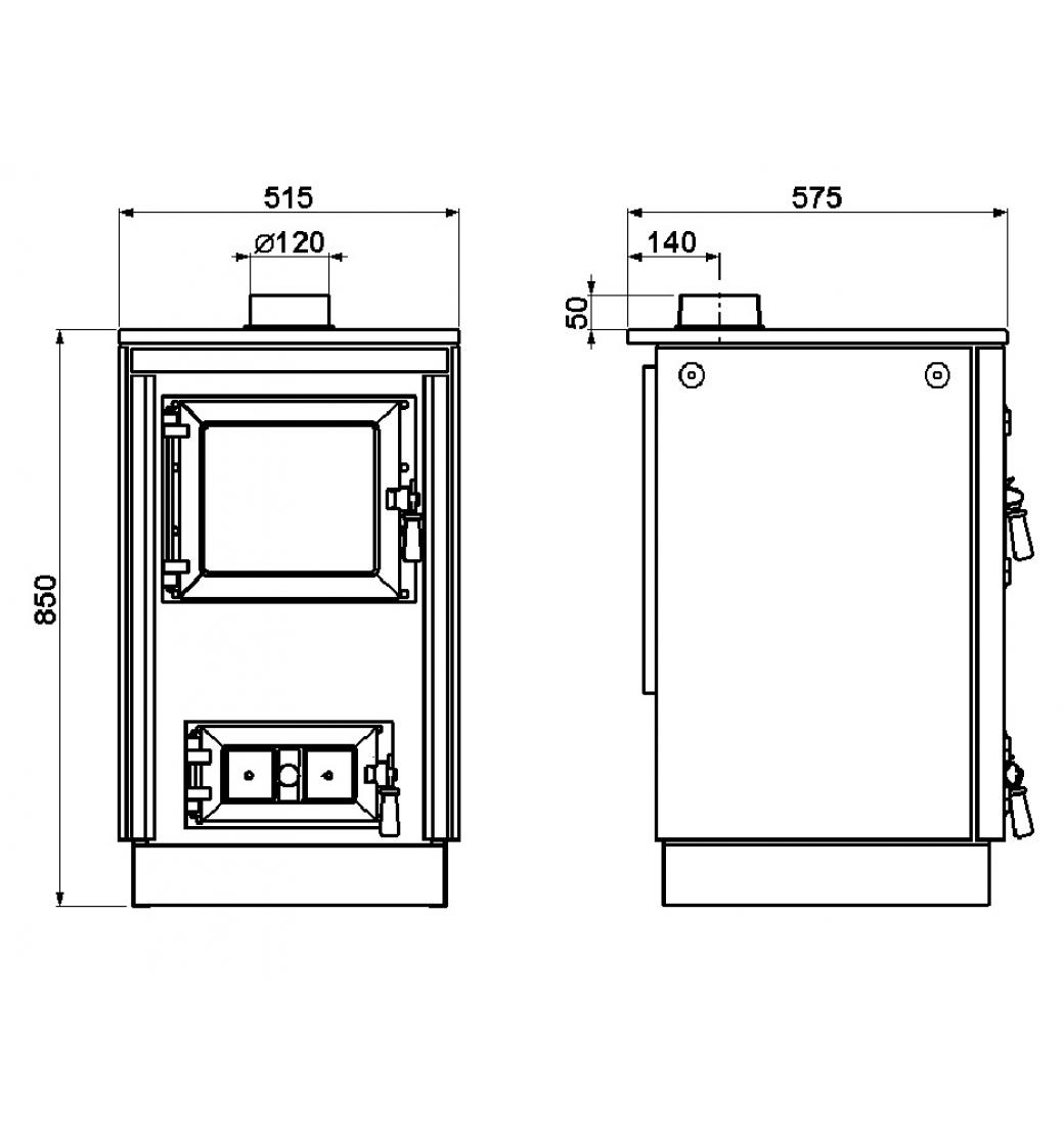 Topeniště je tvořeno tradičně šamotovými deskami o síle 40 mm a robustním litinovým dnem obloženým žárobetonem a litinovým roštem. Vzhledem k tomu, že má tento typ rozměrná vstupní dvířka do topeniště (šířka 300 mm x výška 245 mm), mohou se do něj vkládat polena až o průměru 230 mm a délce 350 mm. Z tohoto pohledu bude tento typ vhodnější, pokud preferujete vytápění před pečením a vařením.