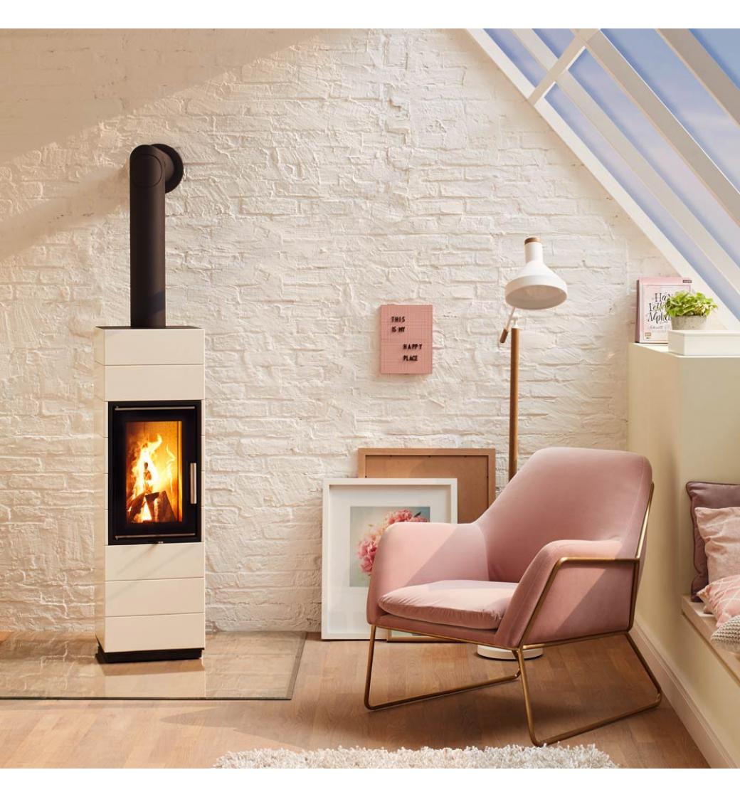 Kamna jsou vybavena bez-roštovou spalovací komorou, velkým prosklením, robustní celo-litinovou konstrukcí ve dvou barevných variantách (matný černý lak, nebo bílý lesklý smalt) a mohou být napojena na externí přívod vzduchu.