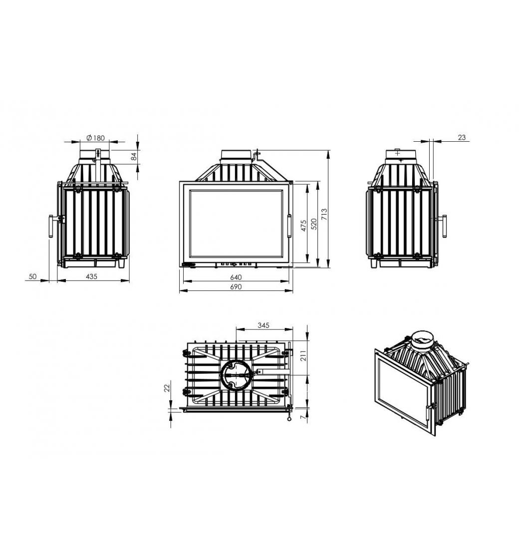 Krbová vložka Nordflam TORN je litinová s rovný prosklením o výkonu 14 kW. Má celolitinové topeniště s litinovým roštem.