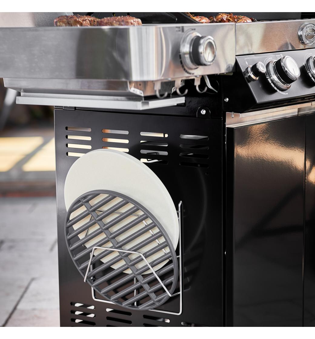 V postranních stolcích se ukrývá hořák s plotýnkou a Primezone dosahující teploty až 800 °C. Plotýnku využijete pro přípravu omáček a příloh, zatímco Primezone poslouží při úpravě šťavnatého masa s křupavou krustou. Pokud zrovna hořáky nepoužíváte, můžete na ně odkládat potřebné suroviny či náčiní. Stolky jsou vyrobeny z nerezové oceli, a tak budete mít s údržbou i čištěním minimum práce.