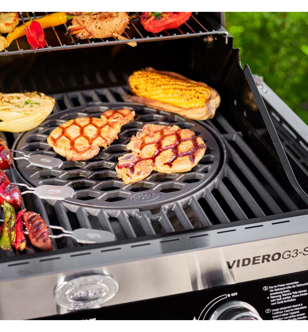 Své vaření můžete rozšířit i o další techniky s variabilním systémem Vario+, který promění gril v kompletní venkovní kuchyni. Univerzální rošt jednoduše nahradíte za pizza kámen, Wok pánev, litinový kotlík a další komponenty. S grilem Videro nebudete ochuzeni ani o rožnění či uzení!