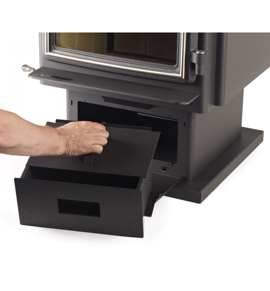Ve standardním vybavení nejsou kanadská kamna vybavena popelníkovým systémem.