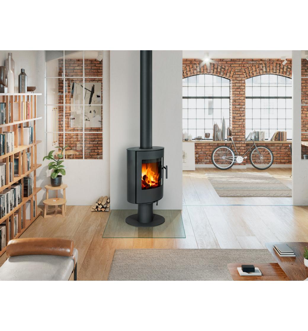 Veškeré ovládání vzduchu je řešeno jediným prvkem, což zjednodušuje regulaci hoření. Otočné topeniště poskytuje uživateli pohodlí a flexibilitu při sledování ohně z více úhlů – ideální do otevřených prostor, obývacích pokojů i moderních interiérů.