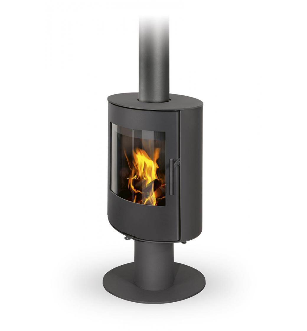 Otočná krbová kamna o výkonu 2,5-6,6 kW a průměrem kouřovodu 150mm.