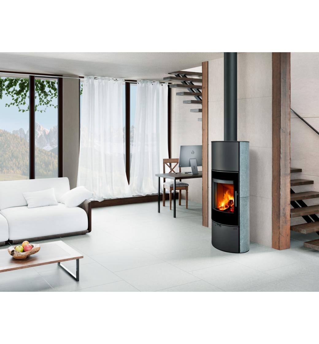 Konstrukce je vhodná pro nízkoenergetické domy. Kamna mají designově potištěné velkoplošné prosklení a jsou vybavena systémem CPV pro centrální přívod externího vzduchu. Standardně lze využít horní nebo zadní odvod spalin. Sekundární přívod vzduchu zajišťuje průběžné omývání skla, čímž zabraňuje jeho zanášení.