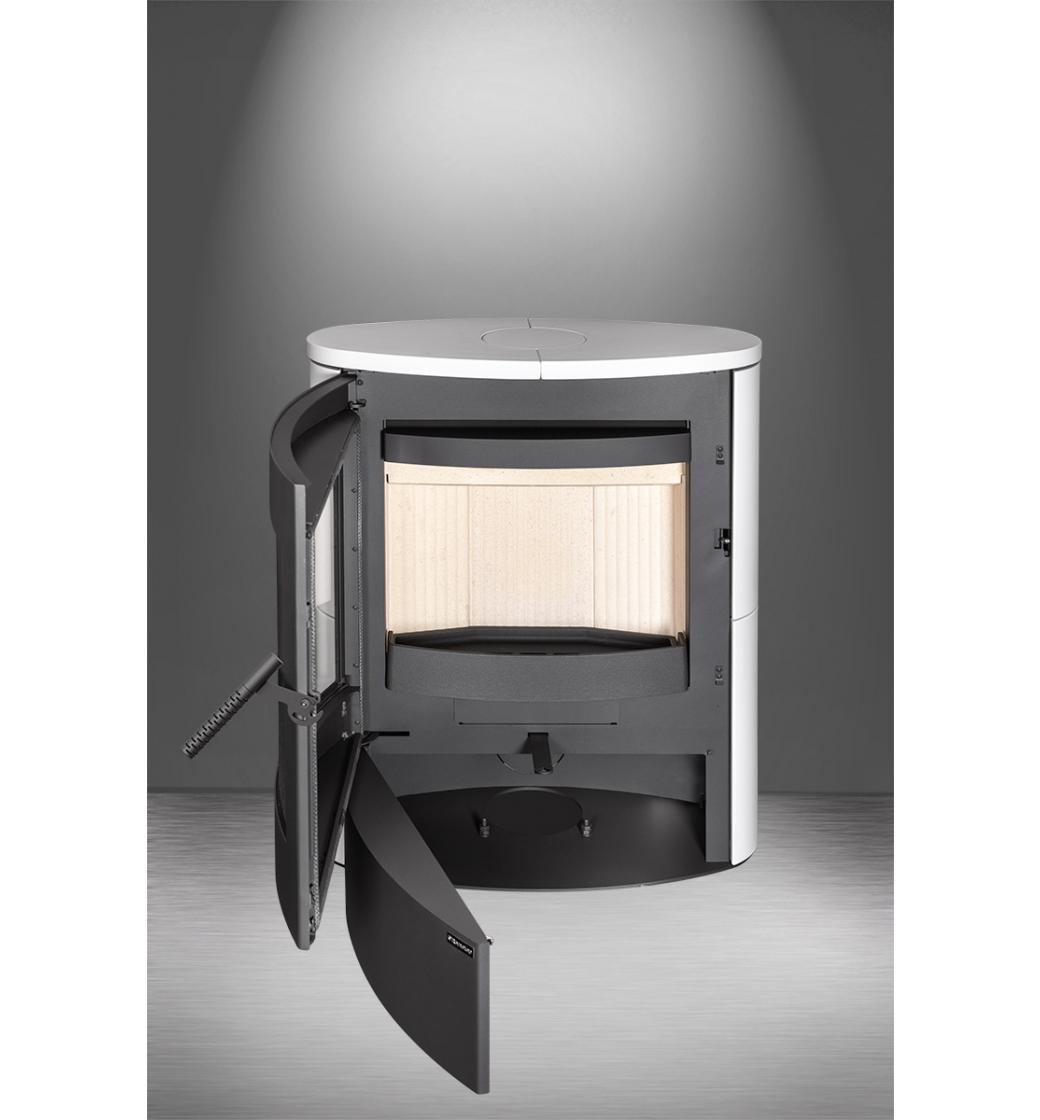 Spalovací komora je vyložena šamotovými tvarovkami pro vyšší odolnost a účinnost. Regulace primárního i sekundárního vzduchu je intuitivně ovládána jediným prvkem. Ve spodní části kamen je uzavíratelný dřevník pro skladování menší zásoby dřeva nebo krbového nářadí.