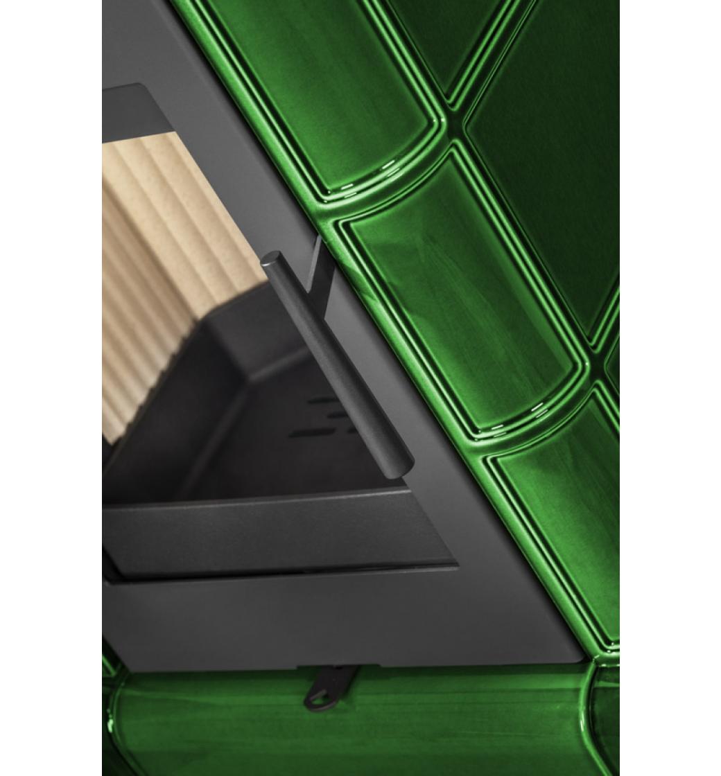 Kachlová kamna jsou vhodná i do nízkoenergetických staveb. Díky centrálnímu přívodu externího vzduchu CPV do topeniště není spotřebováván vzduch z interiéru. Standardně je možné zapojení horního nebo zadního odvodu spalin. Sklo dvířek je na vnitřní straně oplachováno přívodem sekundárního vzduchu a zabraňuje tak usazování nečistot. Spalovací komora je vyložena šamotovými tvarovkami. Regulace primárního a sekundárního přívodu vzduchu se ovládá jediným ovládacím prvkem.