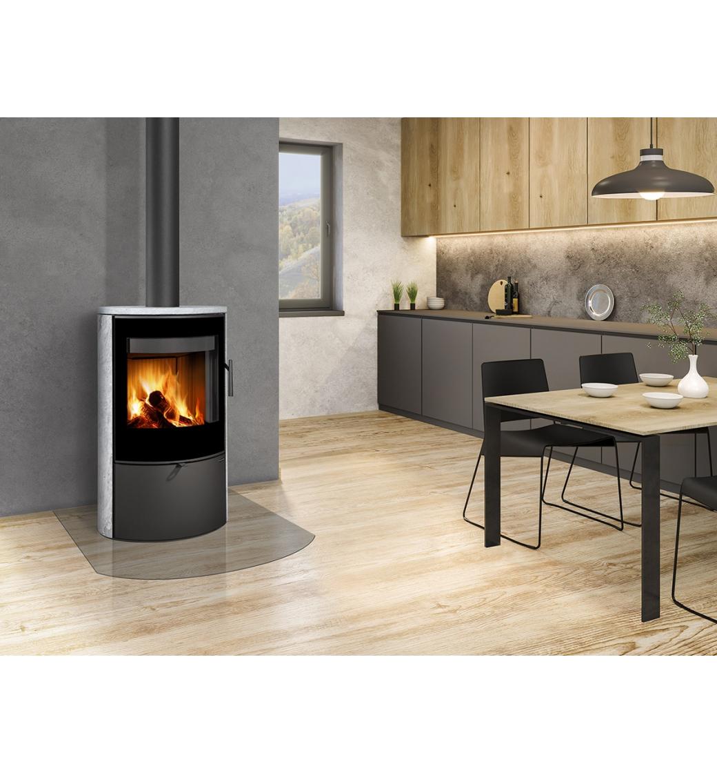 Zaoblený tvar kamen SONE G společně s designovým sklem poskytují příjemný pohled na oheň, který nikdy nezevšední.
