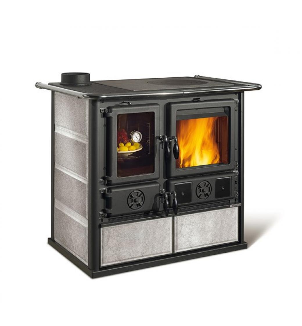Kvalitní litinový sporák na topení dřevem a dřevěnými briketami s velikým proskleným ohništěm a kachlovým obkladem. Velice populární sporák nejen na chaty a chalupy, kde se využije především na topení, ale i smaltovaná trouba na příležitostné pečení a velká litinová plotna na vaření. Jako jeden z mála sporáků na trhu, umožňuje v zadní části napojení na externí přívod vzduchu a nečerpá tak vzduch pro hoření z místnosti.