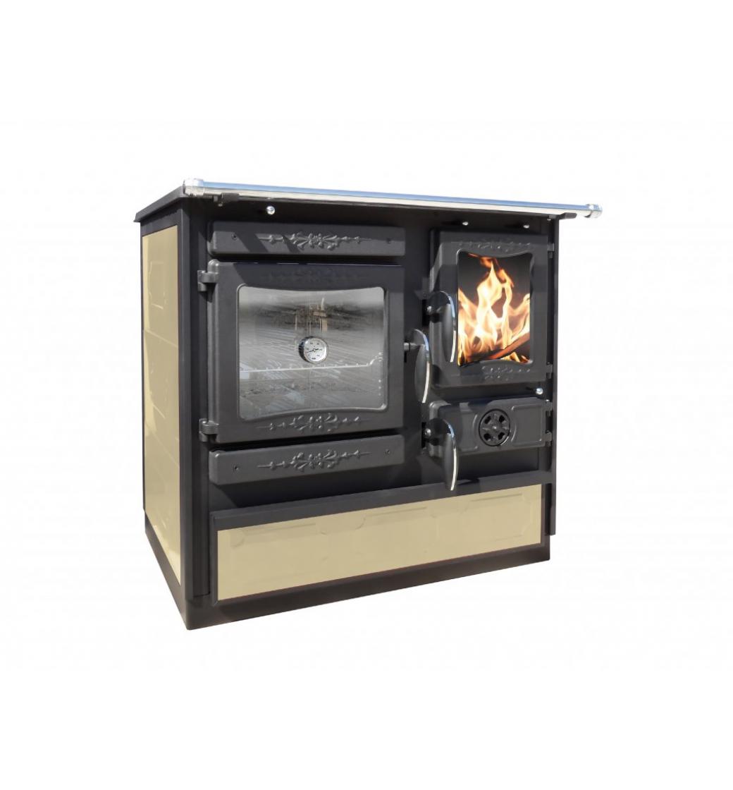 Dvířka disponují teploměrem. Prostor topeniště je vybaven dvěma rošty pro letní a zimní provoz. Pod celým sporákem se nachází praktická zásuvka, například na uskladnění paliva.