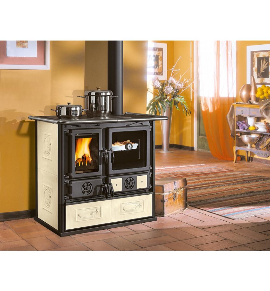 Kachlový obklad dodává sporáku krásný vzhled a slouží jako solitérní doplněk interiéru. Konstrukce topeniště je masivní celolitinová a veškeré ocelové díly jsou smaltované z obou stran nebo pozinkované, což zaručuje dlouhodobou životnost sporáku. Veškerá dvířka jsou také z masivní litiny. Vypovídající údaj o masivní konstrukci je samotná hmotnost sporáku, která je 183 kg. Pečící trouba o objemu 41 litrů je oboustranně smaltovaná tudíž povrch je odolný proti propálení a snadno se udržuje. Ve dvířkách trouby je integrovaný teploměr pro rychlou a přesnou kontrolu teploty, který tak zaručuje pohodlné pečení. Litinová varná plotna je precizně zabroušena pro dokonalý převod tepla a zespodu masivně vyztužena pro dlouhodobou životnost. Sporák je vybaven mechanickou přepínací klapkou pro snadné a rychlé vyřazení pečící trouby z provozu, např. při letním vaření nebo při roztápění sporáku. Spaliny tak odchází z topeniště rovnou pod plotnou do komínu a nebo pod plotnou a kolem dokola celé pečící trouby a následně v zadní části do komínu. Regulace výkonu sporáku je pomocí dvou šoupátek pro primární a sekundární vzduch. Pod roštem je snadno odnímatelný popelník. Prostor pod troubou může sloužit pro ohřívání, sušení, uchování teplých pokrmů nebo jen jako úložný prostor na plechy a rošty. Ve spodní části je výsuvný úložný prostor na dřevo nebo na příslušenství ke sporáku.