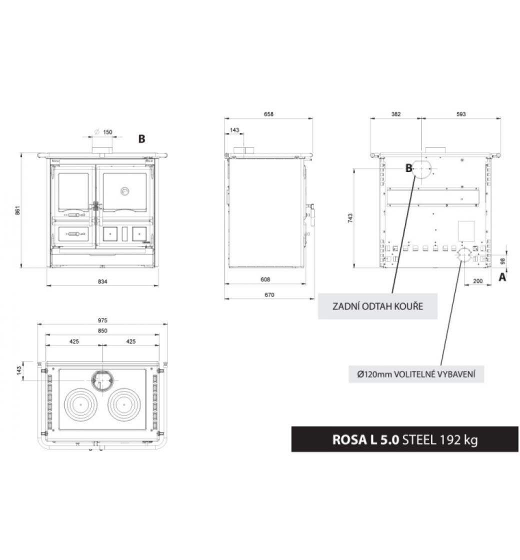 Kvalitní litinový sporák na topení dřevem a dřevěnými briketami s proskleným ohništěm a smaltovaným ocelovým obkladem, zaručující okamžité předávání tepla. Tento typ se pyšní velkou pečící troubou o objemu 55 l. Trouba je oboustranně smaltovaná, tudíž její povrch je odolný proti propálení a snadno se udržuje. Ve dvířkách trouby je integrovaný teploměr pro rychlou a přesnou kontrolu teploty, který tak zaručuje pohodlné pečení.