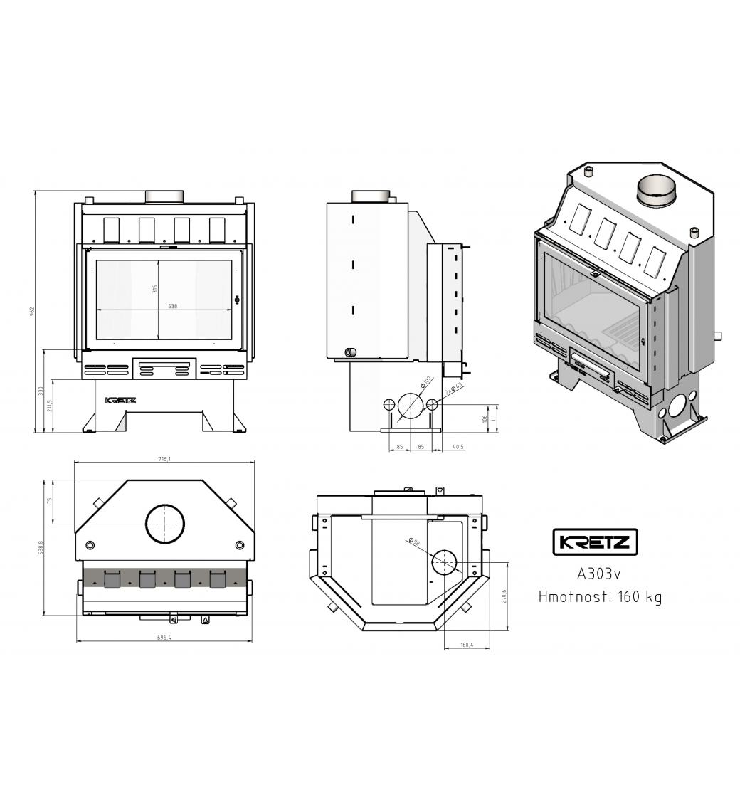 Teplovodní krbová vložka Kretz A 303 V