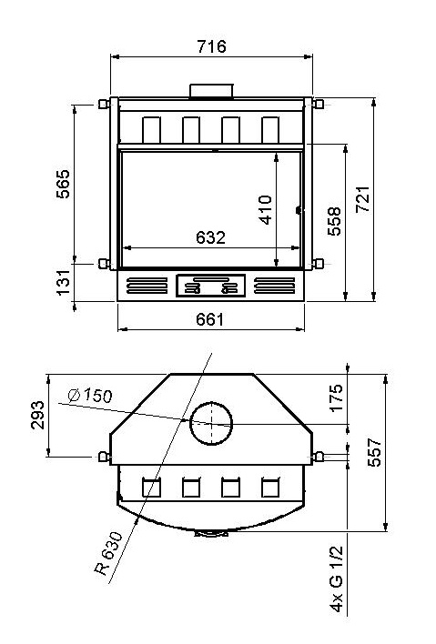 Krbová vložka teplovodní,objem vody v krbové vložce 22 l.