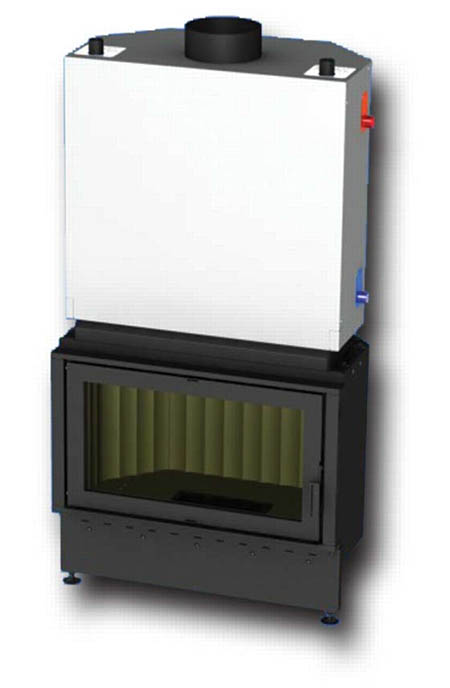 Teplovodní krbová vložka s topeništěm z litého žárobetonu, rovným prosklením a teplovodním výměníkem s vychlazovací smyčkou.Teplovodní krbová vložka Kretz B103 - V21