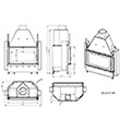 Jednoplášťová ocelová vložka s litým žárobetonem v topeništi. Dvířka s rovným sklem umožňují otevírání horním zdvihem.Teplovzdušná krbová vložka Kretz B 104
