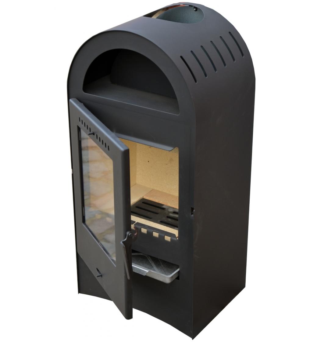 Přikládací dveře jsou zasklené keramickým sklem s vysokou teplotní odolností.