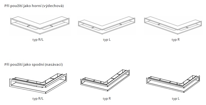 Upozornění: při použití ve spodní části krbu (jako nasávací), je třeba zvolit obrácený typ